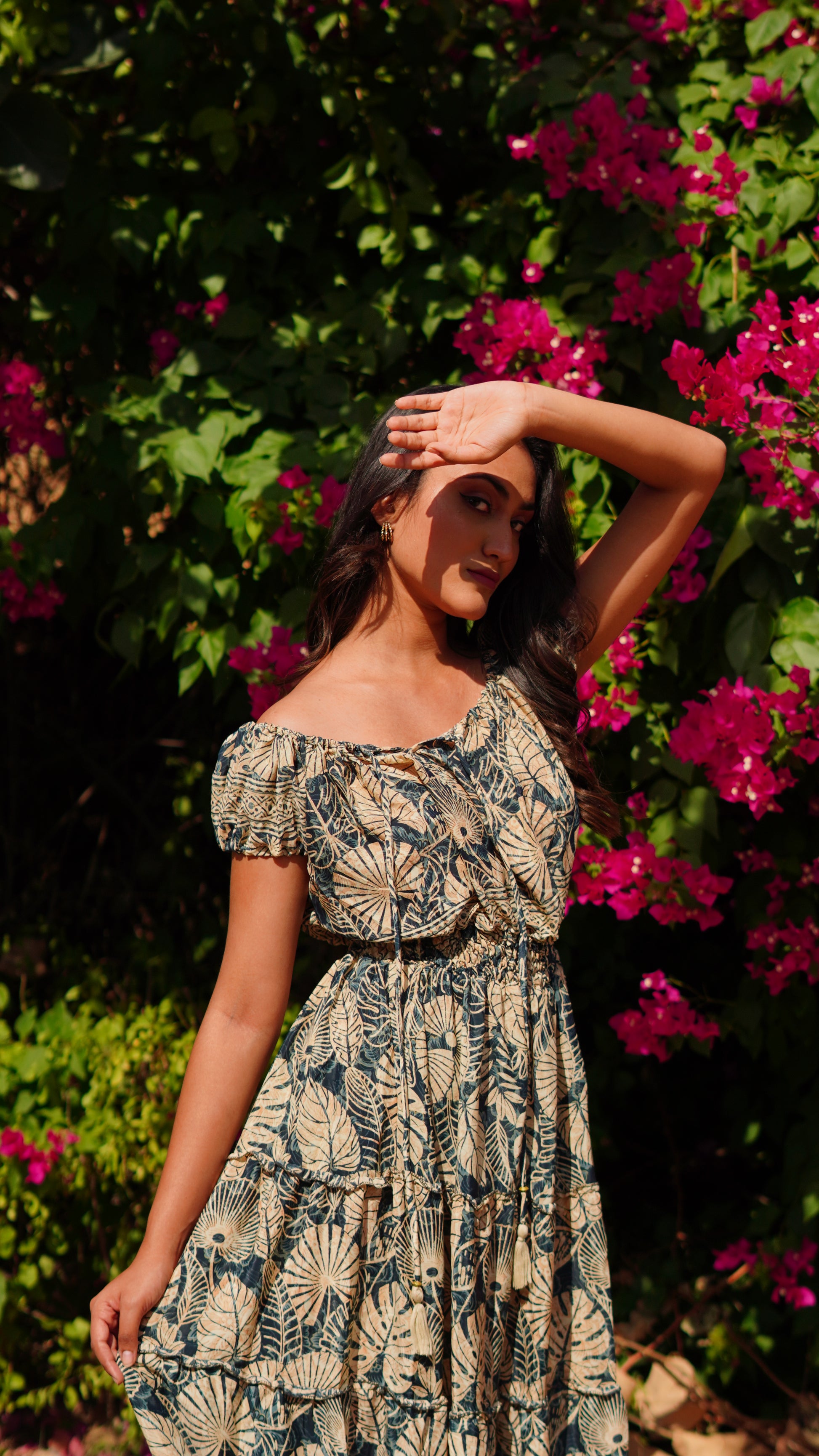 Elasticated Shoulder - Beige Leaf