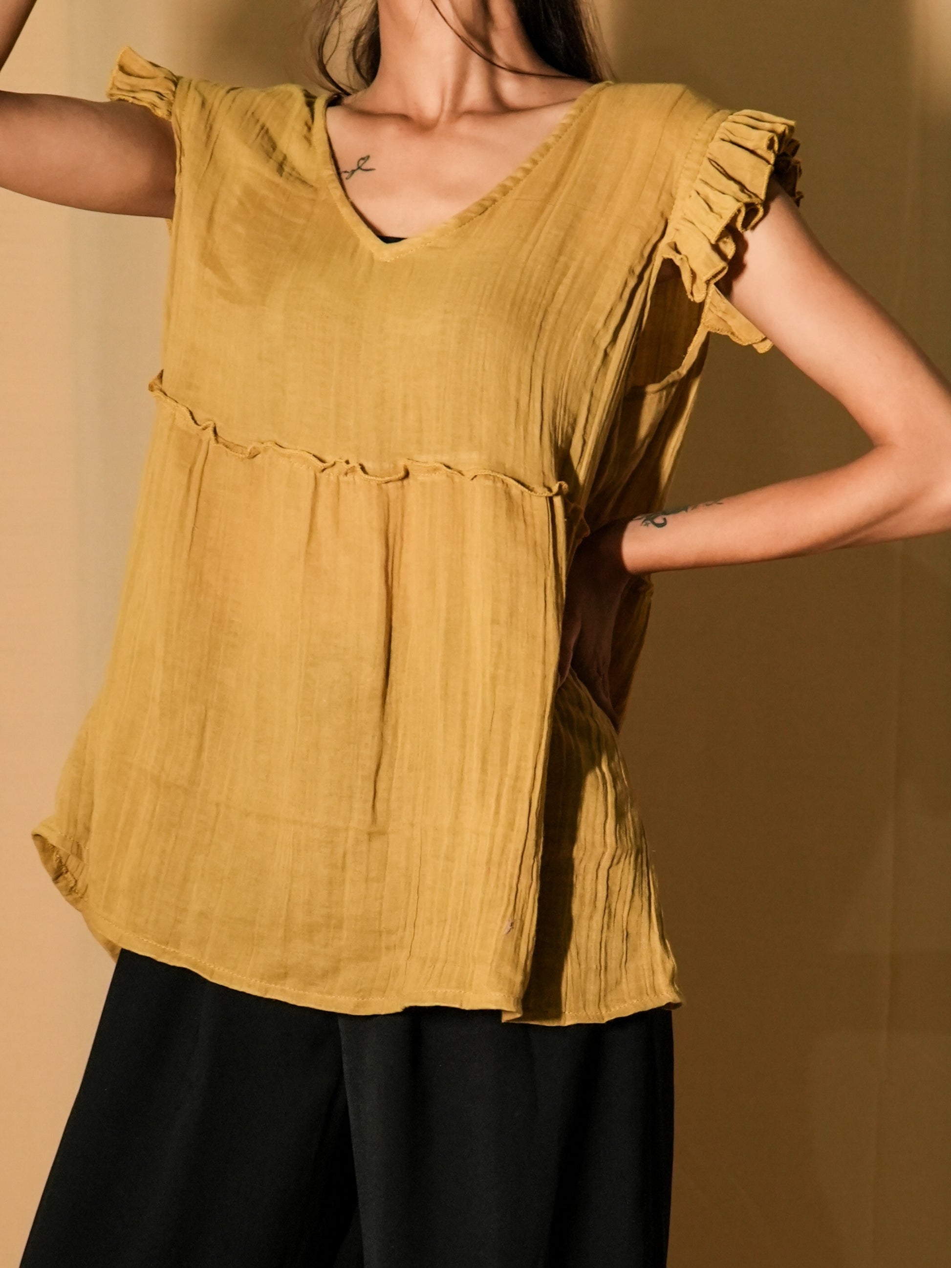 Ruffle BabyDoll Top - Ginckle Marigold Mustard