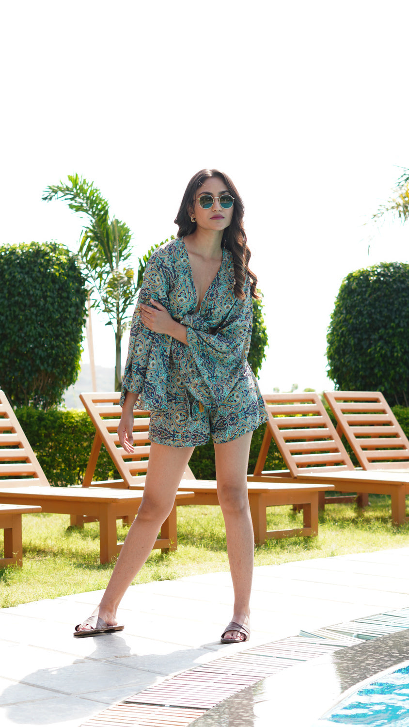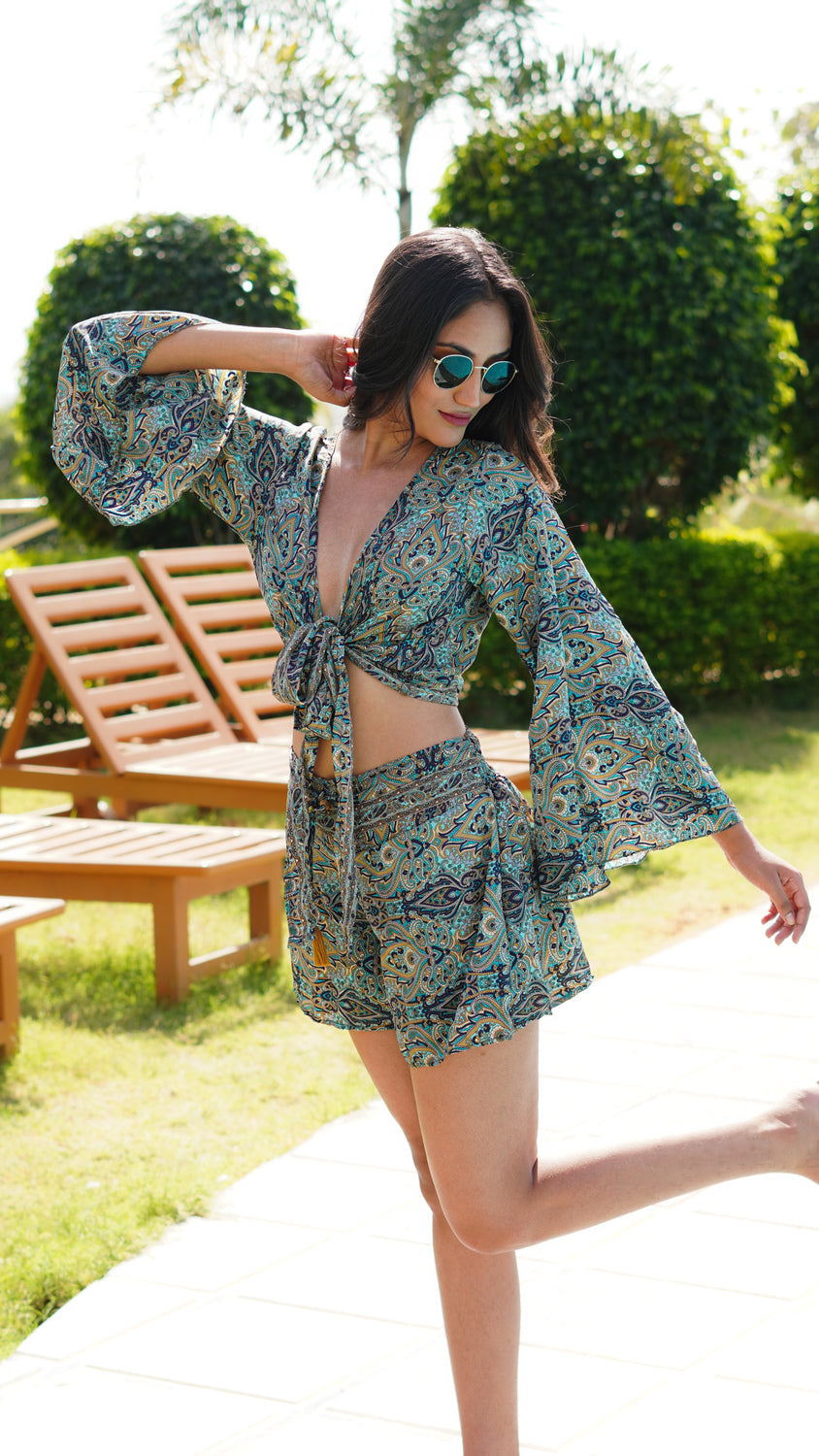 Wrap Top + Beach shorts (set) - Sea Green